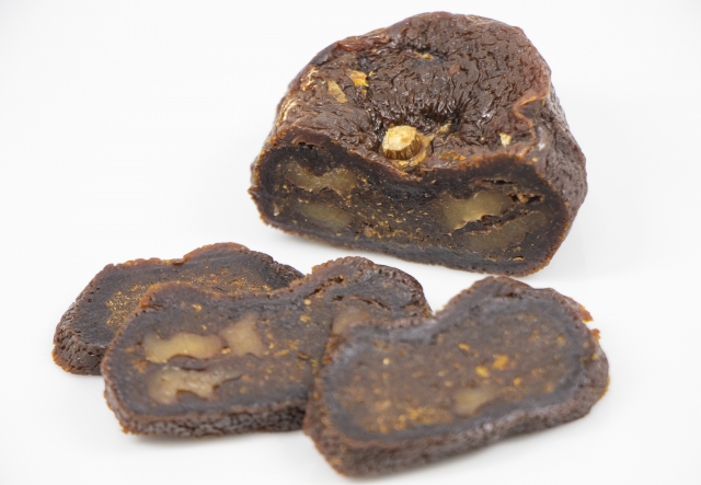 後者の意味のお菓子に胡桃が加えてあるものを「胡桃柚餅子(くるみゆべし)」と呼びます。