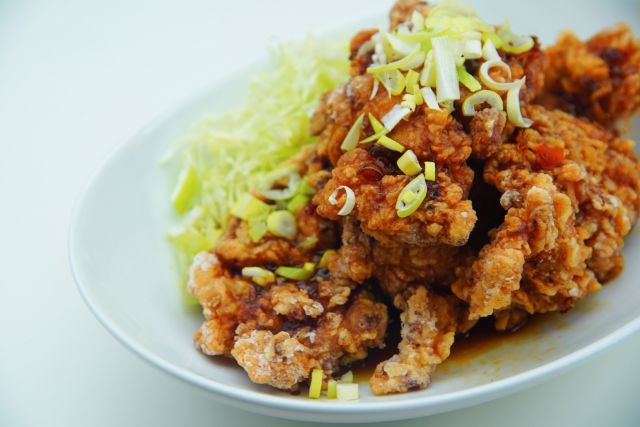 油淋鶏というのは、”鶏肉の唐揚げに、刻んだ長ネギと醤油ベースのタレをかけた中華料理のこと”。
