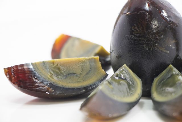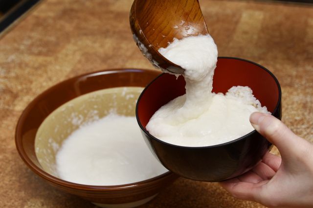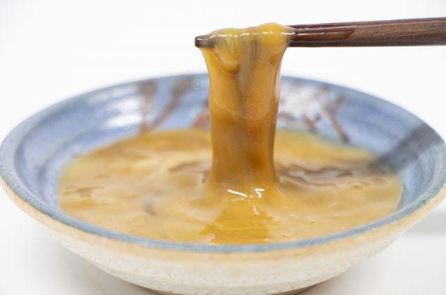 梘水を入れることで、柔らかさや弾力性をもたせ、独特の色合いと風味をつけます。
