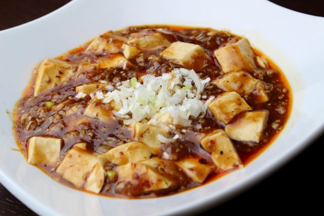 麻婆豆腐というのは、”豚の挽肉(ひきにく)・豆腐・葱(ネギ)などを、唐辛子・豆板醤(トウバンジャン)・花椒などを入れて炒めた四川料理のこと”。