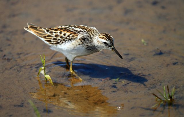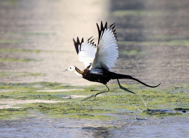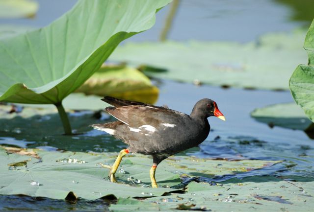 長い指と爪によりかんじきのように接地面の圧力を分散させて、池に浮いた植物の葉の上を歩くことができます。