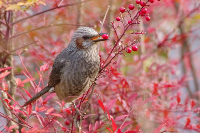 百舌は捕らえた獲物を木の枝に突き刺しておく習性があり、この習性のことを「百舌の速贄(はやにえ)」と呼びます。