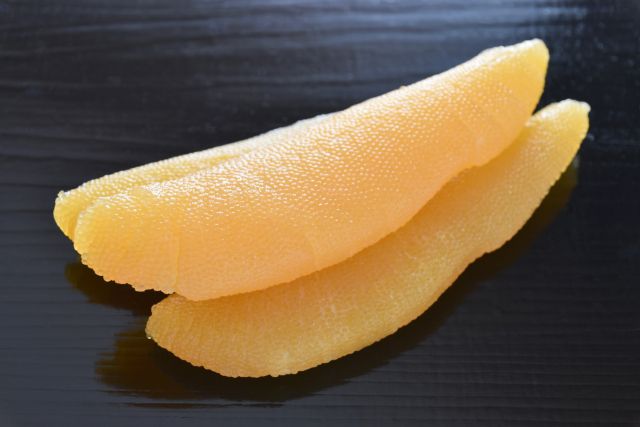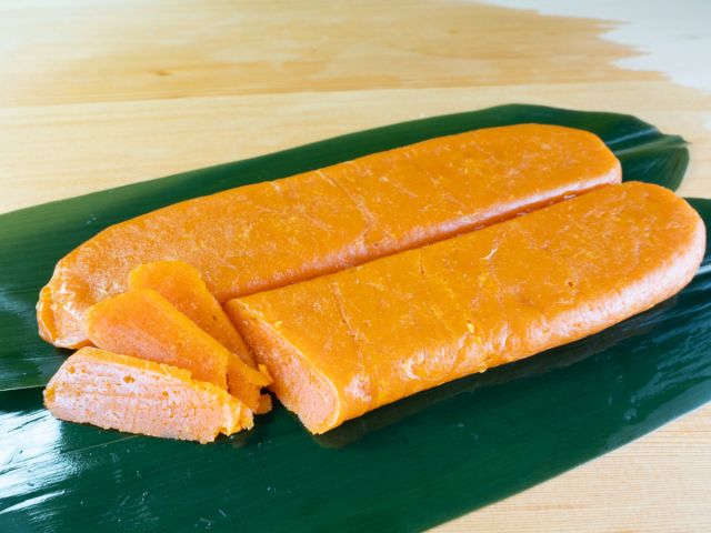 鯔(ボラ)の卵巣を塩漬けして乾燥させたものを「唐墨(からすみ)」と呼び、雲丹(うに)・海鼠腸(このわた)と並んで日本三大珍味と言われています。