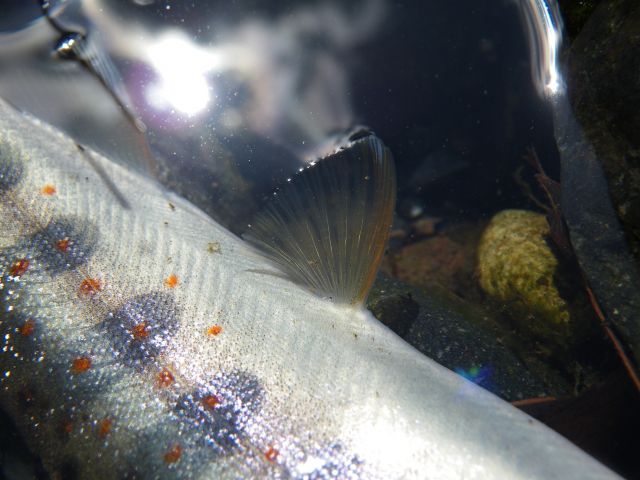 河川で生まれて一生を河川で過ごす河川残留型(陸封型)を「山女魚(ヤマメ)」、生まれてから海へ下る降海型を「桜鱒(サクラマス)」と呼びます。