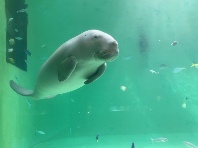 (群れでいるときで近くに海藻がないときは、手を繋いで群れからはぐれないようにします)