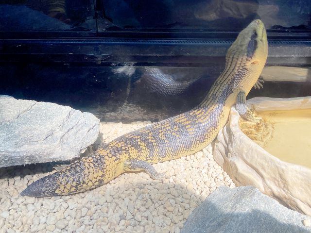 垂直なガラス面にも張り付いて行動でき、尾は自切・再生することができます。