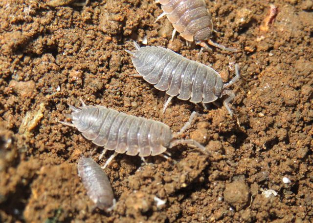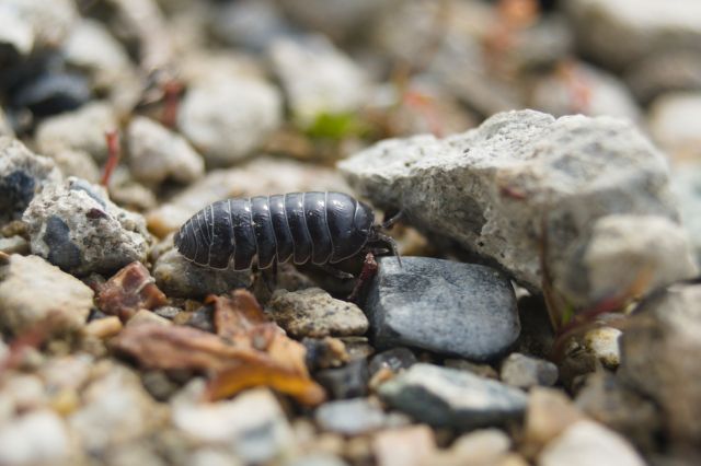 草鞋虫の見た目は「団子虫(ダンゴムシ)」と似ていますが、団子虫と比べて扁平(平たい)で、丸まることはできません。