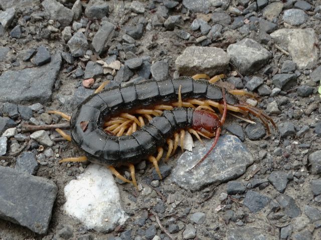 百足というのは、”唇脚綱(しんきゃくこう)(別名:ムカデ綱)に分類される節足動物のうち、ゲジ類を除いたものの総称”。