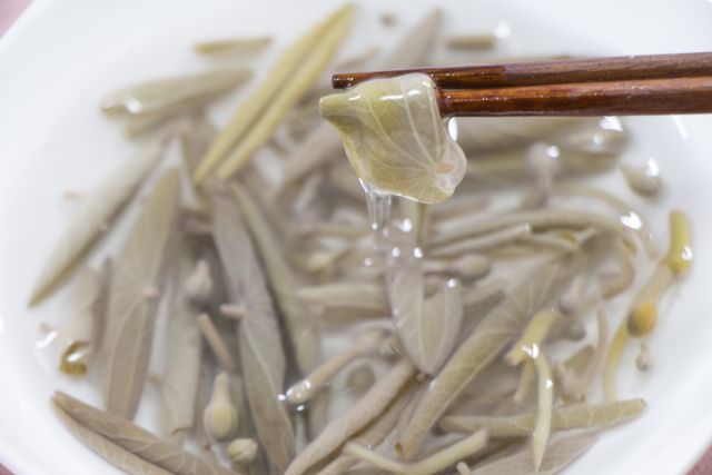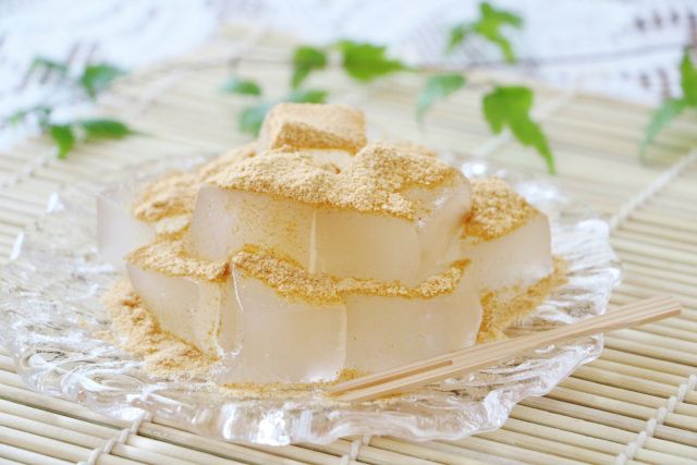 蕨は根茎(こんけい)から澱粉(デンプン)を取り、この澱粉のことを「蕨粉(わらびこ)」と呼び、蕨粉に水と砂糖を加えて練ったものを「蕨餅(わらびもち)」と言います。